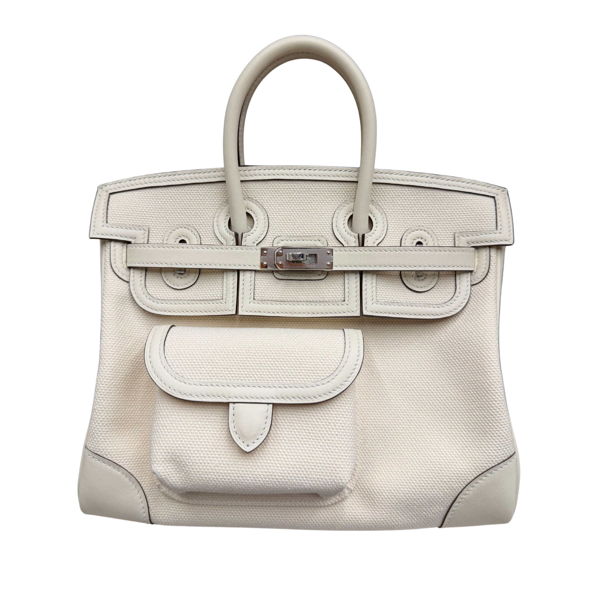 Introducing the Hermès Birkin Cargo 25 in Toile Goeland and Swift leather with Palladium Hardware—a refined balance of luxury and functionality. This limited-edition Birkin 25 is crafted from durable Toile Goeland canvas and supple Swift leather in the elegant Nata shade, offering a modern interpretation of the iconic Birkin silhouette.Designed for the discerning collector, the compact yet versatile Cargo 25 showcases Hermès’ exceptional craftsmanship while embracing a contemporary, utilitarian aesthetic. A distinctive statement piece, it brings both style and practicality to any curated luxury handbag collection … view full details